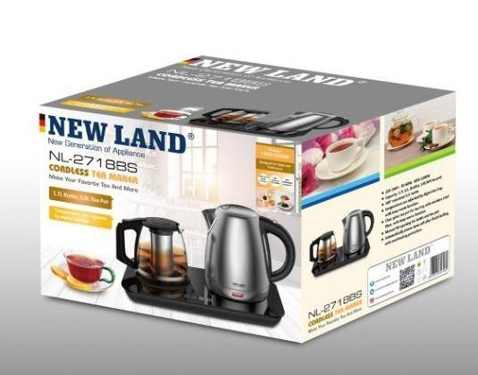 چای ساز نیولند مدل NL-2718BS یکی از مدلهای خوشساخت و کاربردی برند New Land است که برای استفاده روزمره در خانه یا محل کار طراحی شده است. این چایساز از نوع صفحهای بوده و کتری و قوری آن روی یک صفحه شیشهای مقاوم قرار میگیرند که علاوه بر زیبایی، نظم بیشتری به فضای آشپزخانه میدهد.
